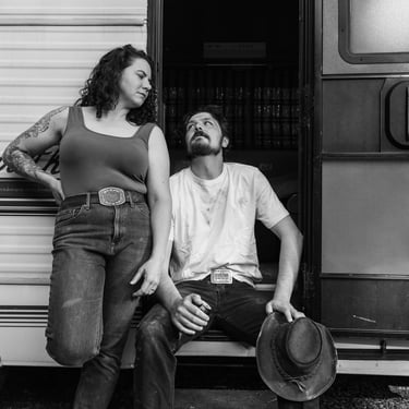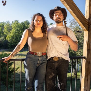 1st shoot for belt buckle designer Metal Some Art. Carly and Paul stay fashionable during a rugged hike into the forest.